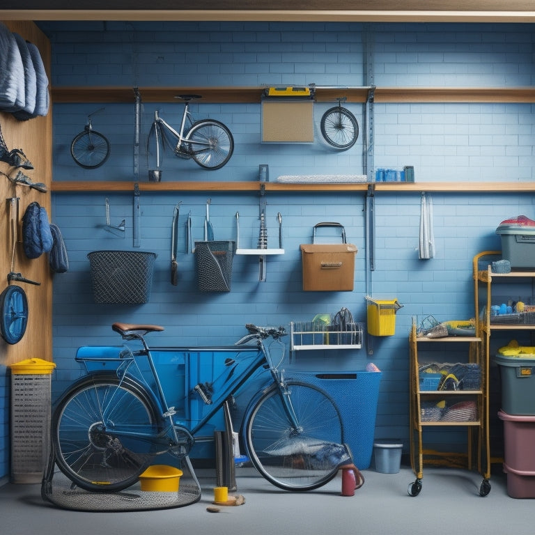 As you aim to optimize your garage's vertical space, contemplate installing an overhead bike storage rack that securely suspends your bicycles from the ceiling, freeing up valuable floor space for other essential items. This clever storage hack not only maximizes your garage's potential but also guarantees bike security and enhances bike aesthetics.