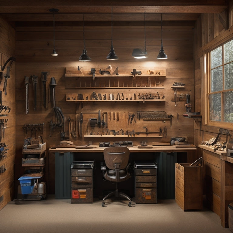 To achieve woodworking success, you need a well-organized tool storage system. Maximize your workshop's space efficiency by assigning a home for each tool and implementing a functional layout. Organize tools by frequency of use, and install wall-mounted racks for frequent users. Utilize vertical shelving and floor-to-ceiling shelves for varied tool sizes, and invest in tool cabinets with adjustable compartments. By reducing clutter, you'll reduce frustration and increase productivity. Now that you've got the basics covered, you can start fine-tuning your system to take your woodworking skills to the next level.