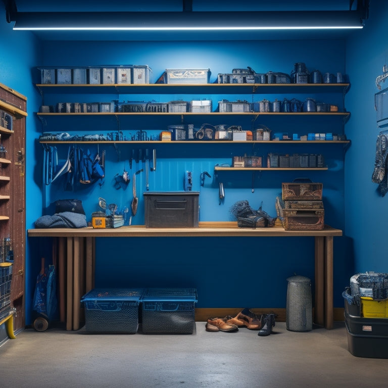 You can maximize your garage's storage capacity with a pegboard and hook system, which allows you to hang frequently used tools and accessories within easy reach. This tool wall organization system is a game-changer for any garage. By hanging your tools, you'll free up valuable floor and shelf space, making it easier to navigate your garage.