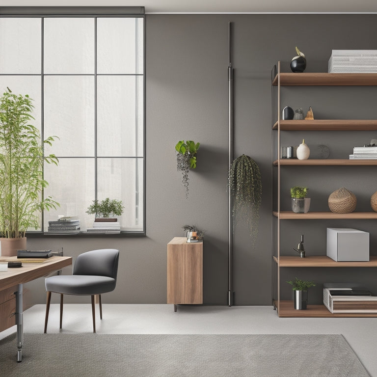 As you step into a room, your eyes are immediately drawn to the sleek, modern lines of a wall-mounted shelving system, elevating the space's aesthetic appeal. The system's design versatility allows you to create a customized look that complements your office's unique style. With a wide range of materials, finishes, and colors to choose from, you can easily achieve color coordination that harmonizes with your existing decor.