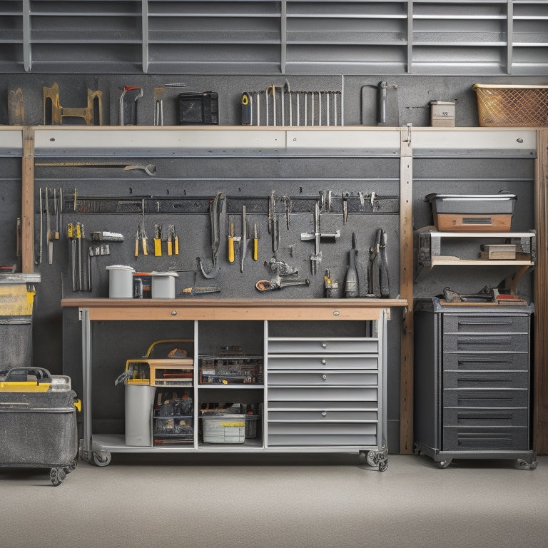 You can customize storage drawers to fit your specific toolset by designing custom drawer sizes and implementing tool organization tips, such as categorizing tools by type and frequency of use, to maximize storage efficiency and safety.