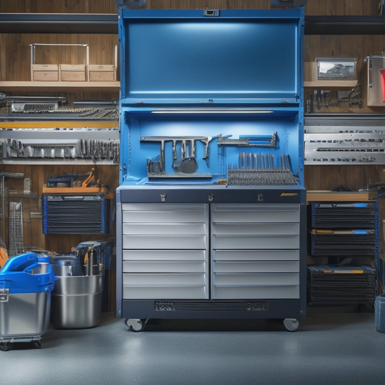 As a professional technician, you need a reliable tool chest that streamlines your workflow, protects your tools, and adapts to your unique requirements. With various types to evaluate, including rolling cabinets, stationary chests, and modular designs, you'll want to assess key features like tool capacity, storage compartment design, and safety features. Look for mobility and portability options, such as wheel systems and ergonomic handles, to enhance efficiency. Additionally, assess customization options, security features, and top brands to guarantee you're investing in a high-quality tool chest that meets your specific needs - and uncover how the right choice can elevate your productivity and job satisfaction.