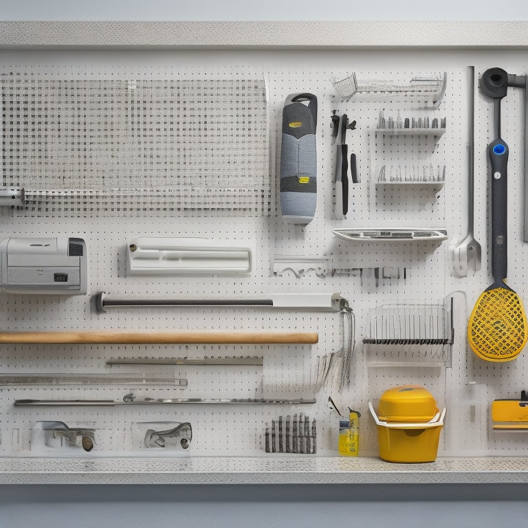 Now that you've maximized your vertical storage capacity, it's time to customize your pegboard layout to guarantee that each tool has its own designated spot, making it easy to find what you need at a glance. This is where color coding and tool labeling come into play. By categorizing your tools by type, frequency of use, or project, you can create a visual system that helps you quickly identify what you need.