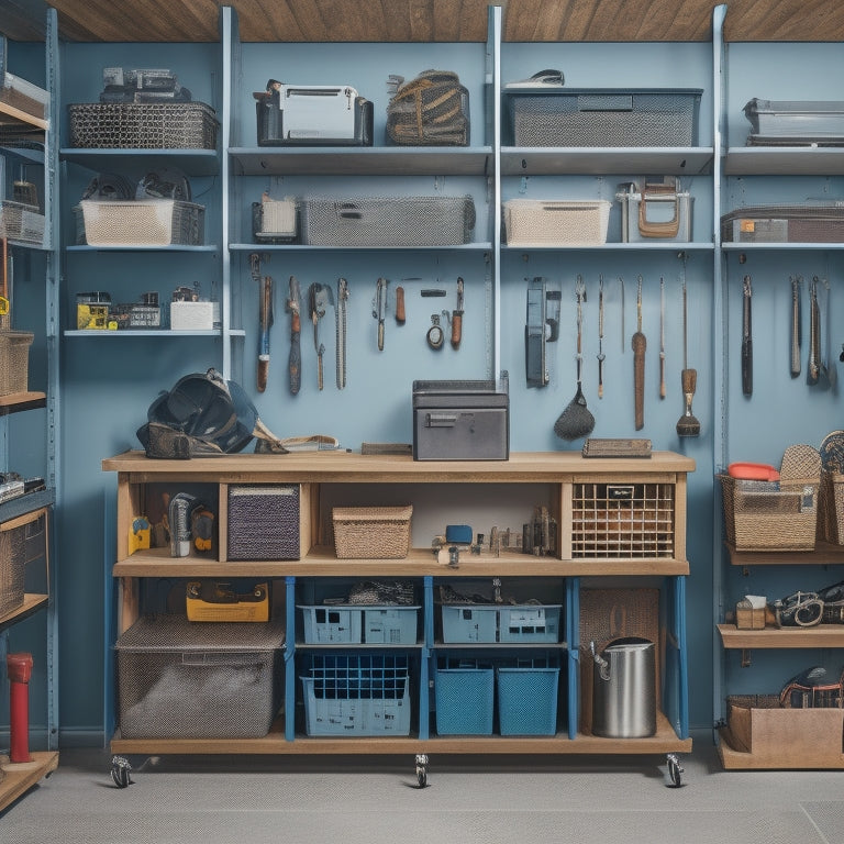 You'll find that tool storage solutions that come with tools offer a convenient and efficient way to keep your workspace organized, with everything you need in one package, so you can focus on getting the job done. From essential hand tools in a portable toolbox to power tools in a workstation, there's a solution that suits your needs. You can also opt for cabinets with assorted fasteners, rolling chests with socket sets, or workbenches with measuring tools. Whatever your choice, these storage solutions will help you stay organized, saving you time and reducing frustration - and there's much more to investigate that can help you optimize your workflow.