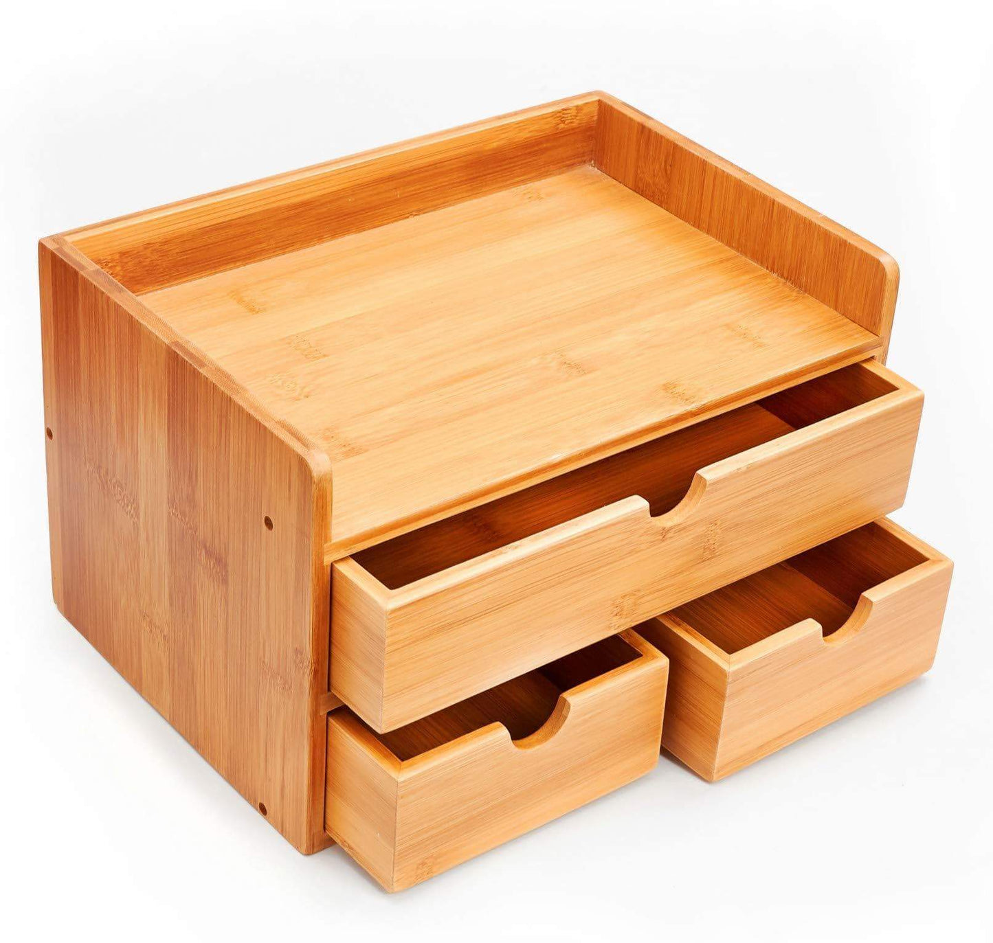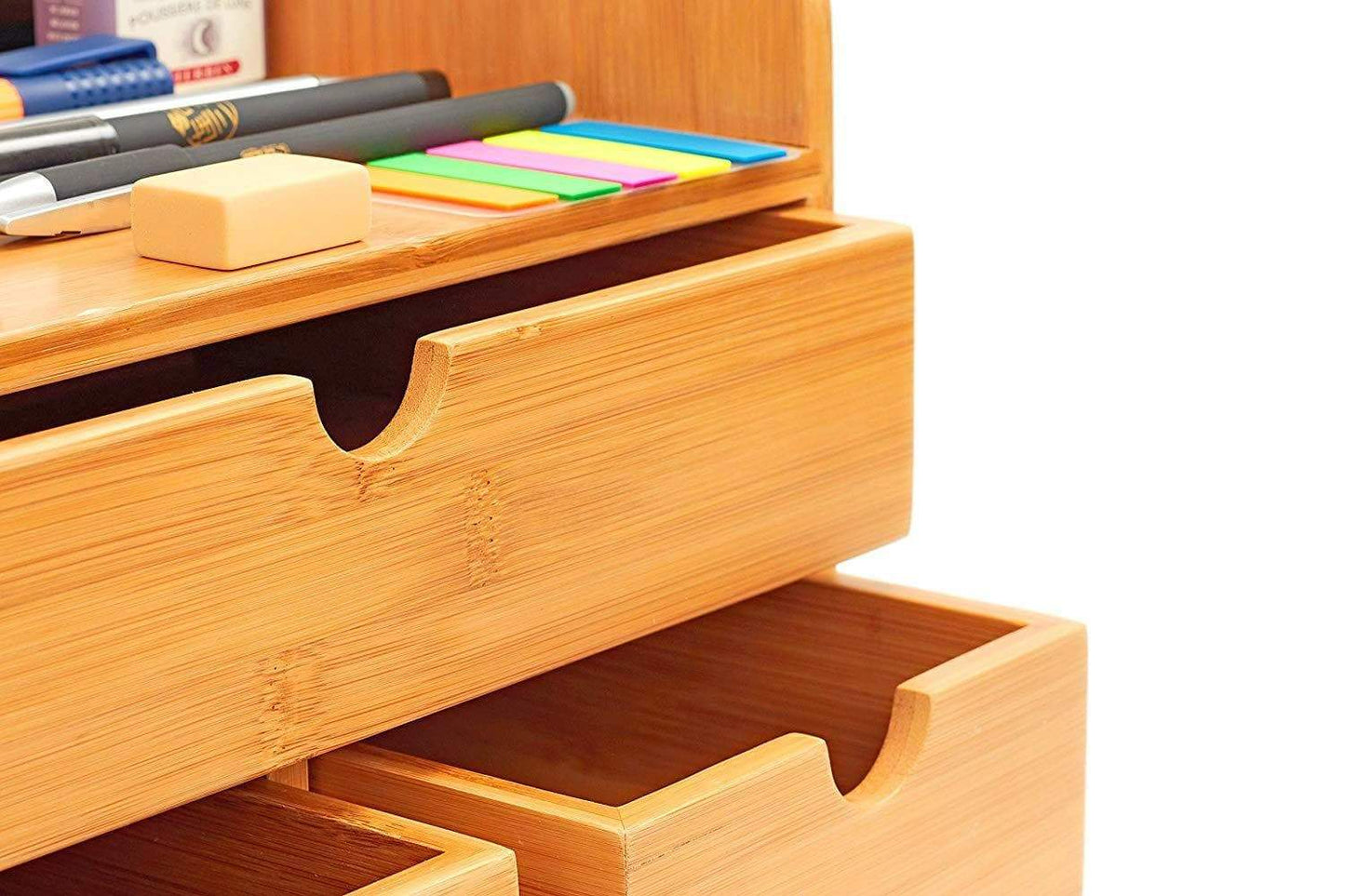 100% Natural Bamboo Wood Shelf Organizer for Desk with Drawers - Mini Desk Storage for Office Supplies, Toiletries, Crafts, etc - Great for Desk, Vanity, Tabletop in Home or Office