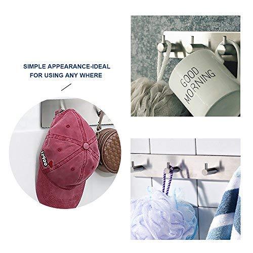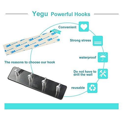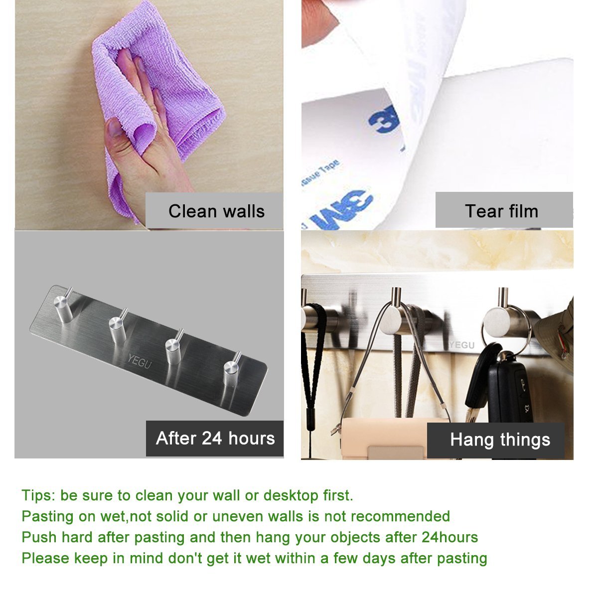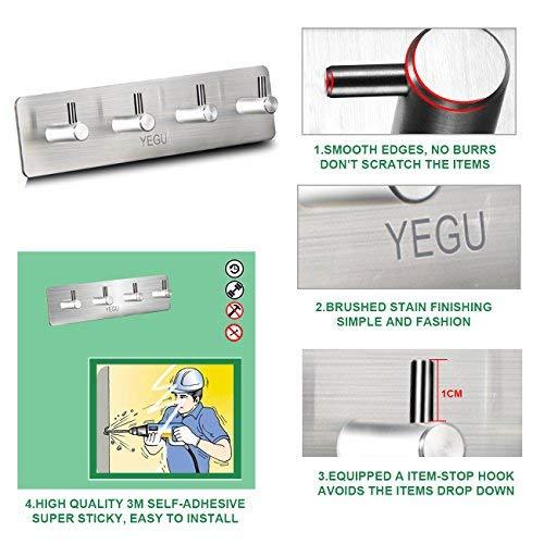 3M Self Adhesive Hooks Key Rack,Yegu Brushed SUS304 Stainless Steel Heavy Duty Coat Hanger Purse Robe Towel 4-Hook Rail for Bathroom Lavatory Kitchen Contemporary Style Wall Mount No Drilling