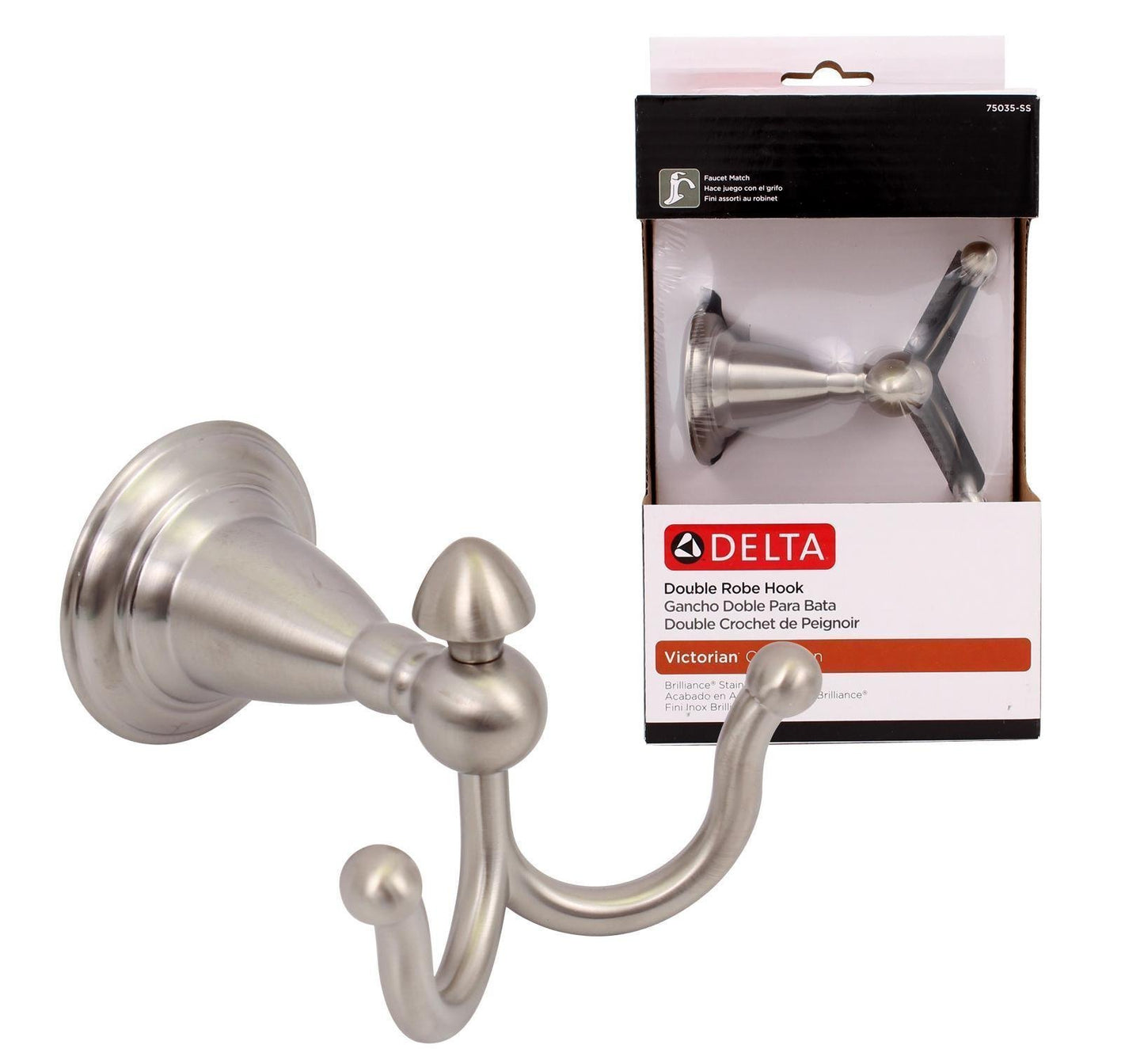 Details: Complete the look of your bath with this Victorian Robe Hook. Delta makes installation a breeze for the weekend DIYer by including all mounting hardware and easy-to-understand installation instructions. You can install with confidence, knowing that Delta backs its bath hardware with a Lifetime Limited Warranty.