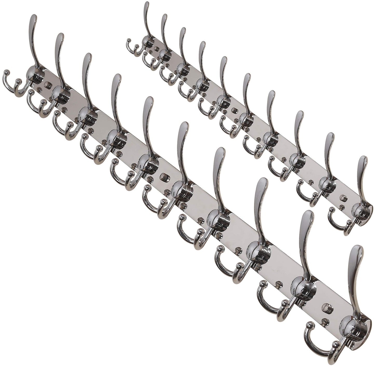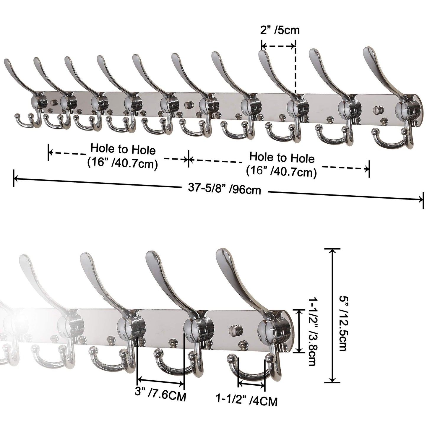 Dseap Wall Mounted Coat Rack - 10 Tri Hooks, 37-5/8” Long, 16” Hole to Hole - Heavy Duty Stainless Steel Coat Hook for Coat Hat Towel Robes Mudroom Bathroom Entryway (Chromed, 2 Packs)