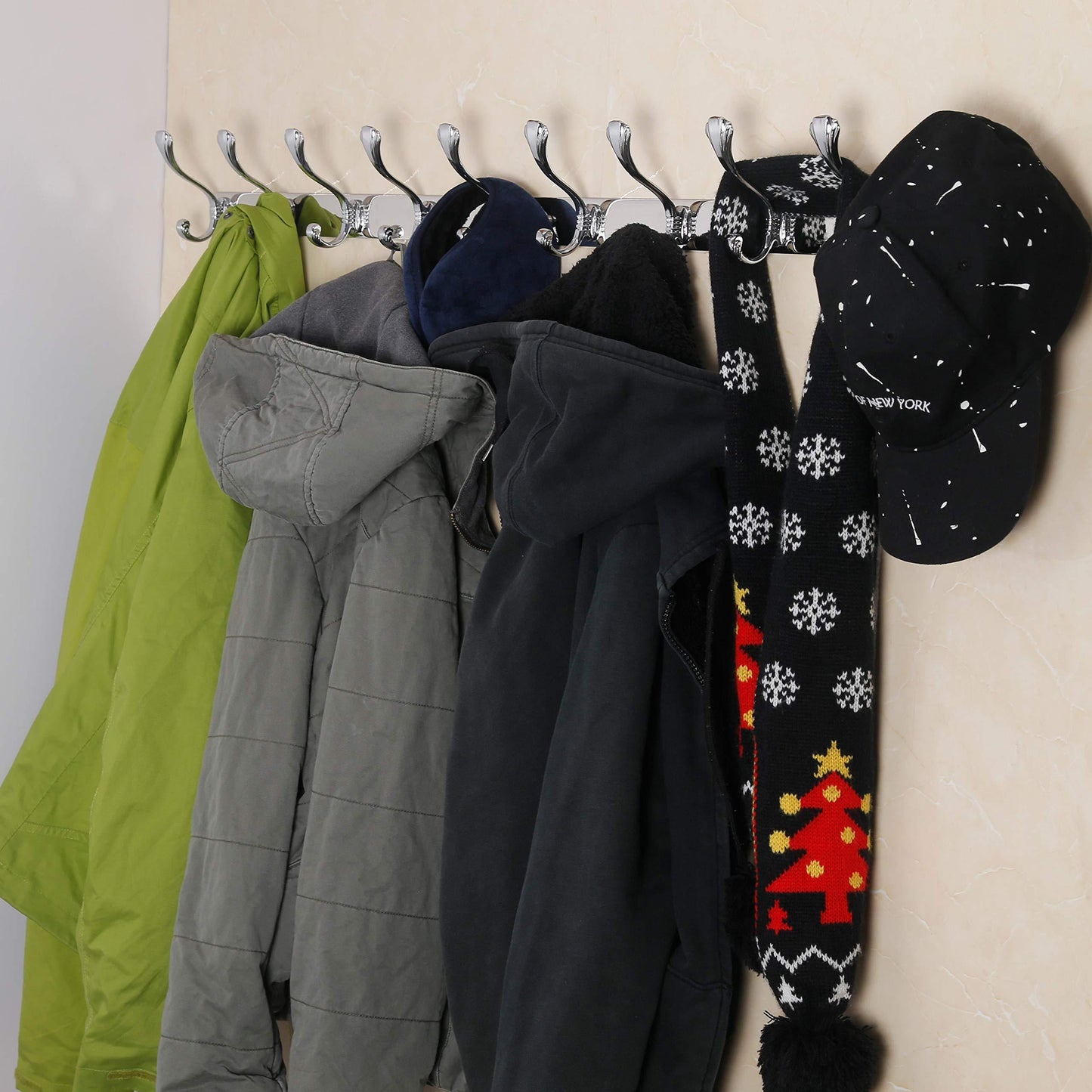- 4.HANGS A LOTS: With10 dual hooks, the wall mounted coat hook well organizes coats, hats, towel, purse, scarfs, robes for entryway, mudroom, bedroom, closet, kitchen, bathroom, and so on.