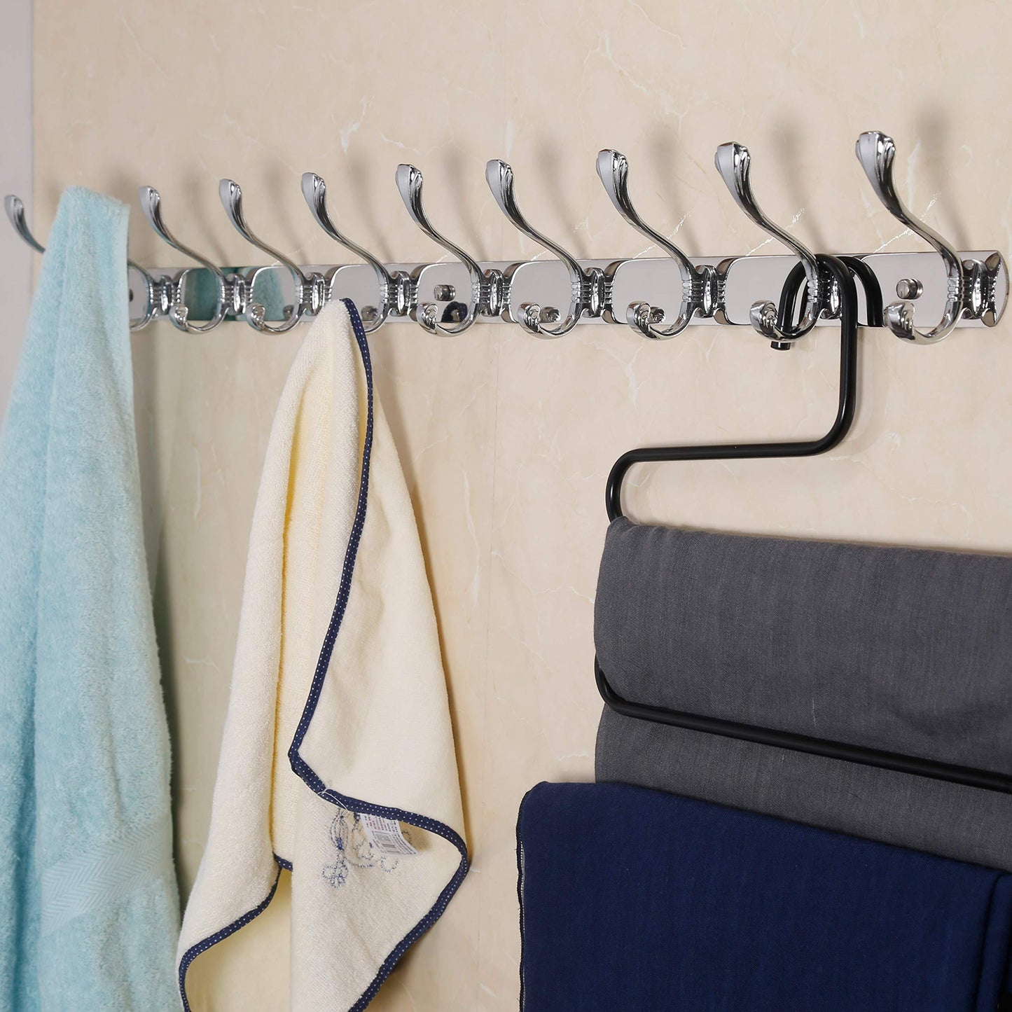 Dseap Wall Mounted Coat Rack Hook: 10-Hooks, 37-5/8” Long, 16” Hole to Hole, Heavy Duty, Stainless Steel, for Coat Hat Towel Robes Mudroom Bathroom Entryway (Seashell, Chromed, 2 Packs)