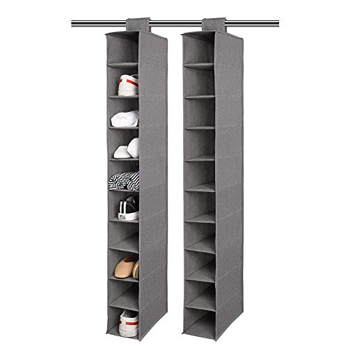 Aoolife Hanging Shoe Organizer, 10 Shelf Fabric Hanging Closet Shoe Storage Organizer - Perfect for Storage Shoes, Handbags, Hats, Socks, Scarves, Toys and More (Grey-2 Pack)