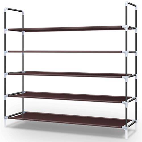 Awenia 5 Tiers Shoe Rack Organizer 25 Pairs,Stackable Shoes Storage Shelves Metal for Closet with Spare Parts DIY Assemble,Brown