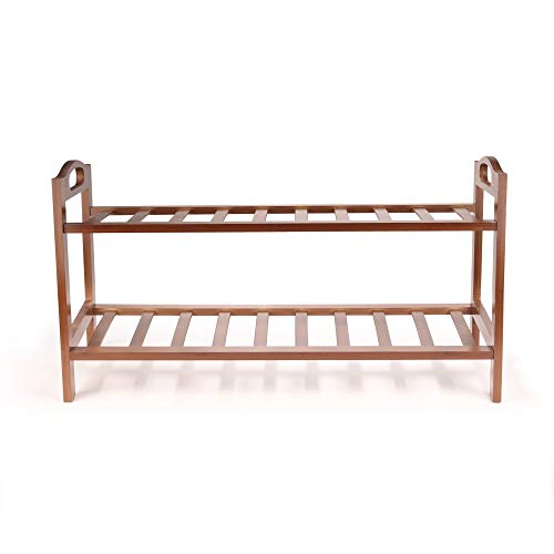 BambooMN 2-Tier Bamboo Wood Shoe Rack, for Entryway or Doorway - Brown Finish - Single Rack