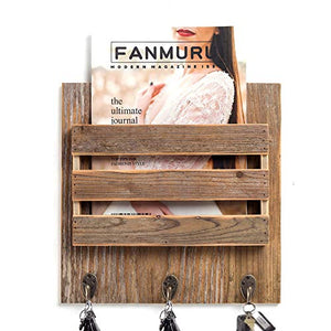 Byher Rustic Wood Wall Mounted Entryway Mail Holder Organizer with 3 Key Hooks,Farmhouse Decor