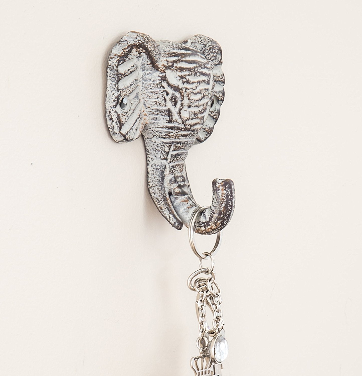 Cast Iron Elephant Single Wall Hook / Hanger | Decorative Wall Mounted Coat Hook | Rustic Cast Iron | 3.3x1.4x5" | With Screws And Anchors by Comfify (Antique White)