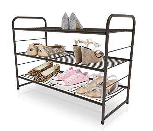 CAXXA 3-Tier Stackable and Expandable Meta Wire Utility Rack Storage for Shoe Household Accessory Organizer Shelf in Entryway Closet Bedroom Kitchen Garage, Bronze