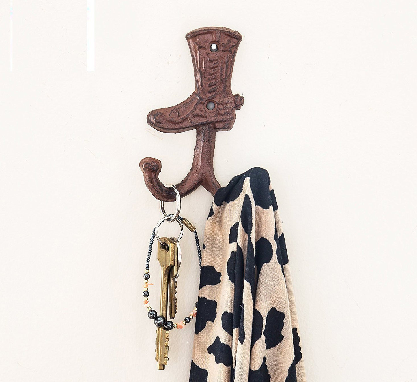 Cast iron wall hook coats hats clothes towels keys more add character entry way door bedroom bathroom patio cabin garden with our metal rack made recycled decorated vintage antique-like finish these hooks will jewel home cor conversation starter this wester key holder rustic old-fashioned charm what great organize high quality product mounted are flimsy last family generations mounting organizer super easy included screws anchors gift idea anyone care about useful has lifetime decorative used any day while bringing special durable artisan unique coat racks make wonderful birthday christmas wedding house warming party mother's just because all products sold amazon come amazon's a-to-z guarantee satisfaction return policy shop confidence thank