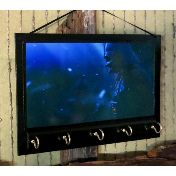 Key holder has a Darth Vader print attached to a MDF board which is highly glazed with 3 coats of clear lacquer to stop any fading of the photo.