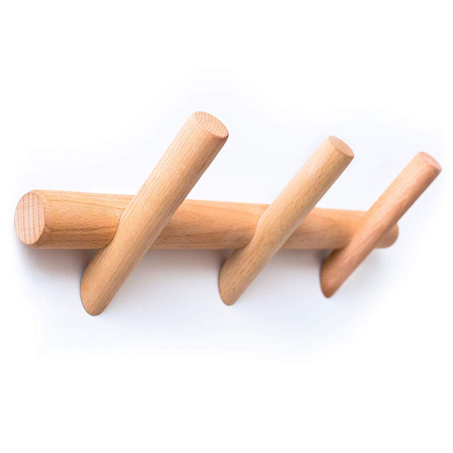 Eden & Co Modern Wall Mounted Coat and Hat Rack – 3 Hooks, Beautiful Wood Entryway Hanger with Pegs - Wooden Bedroom and Bathroom Robe Racks - Durable, Easy Assembly, Classic Design