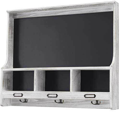 MULTI PURPOSE: Wall Mounted Entryway Organizer includes chalkboard, shelves, 3 double coat or hat hooks. The overall dimensions are 20"x24"