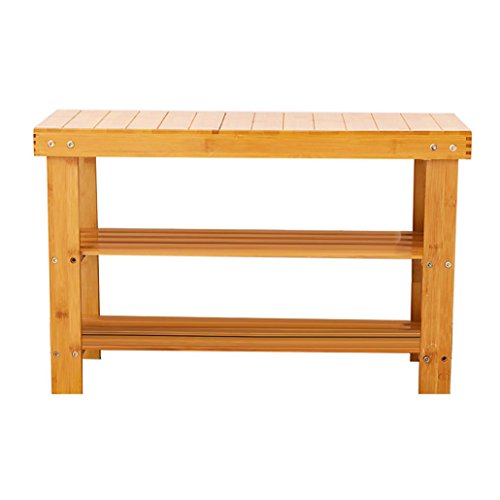 Hmlai 2-Tier 100% Natural Bamboo Wood Shoe Rack Bench, Shoe Organizer,Storage Shelf Ideal for Entryway Hallway Bathroom Living Room and Corridor