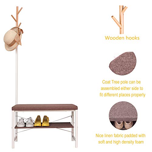 ITIDY Entryway-Bench, Shoe Bench Coat Rack Entryway Storage Shelf, Soft Padded Bench Shoe Rack Entrayway Organizer,Shoe Stand for Doorway,Premium Brown Linen Fabric