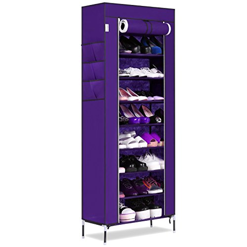 KELAND 10-Tier Standing Tall Large Capacity Shoes Storage Organizer,Portable Shoe Rack with Dustproof Fabric Cover(US Stock) (Purple)
