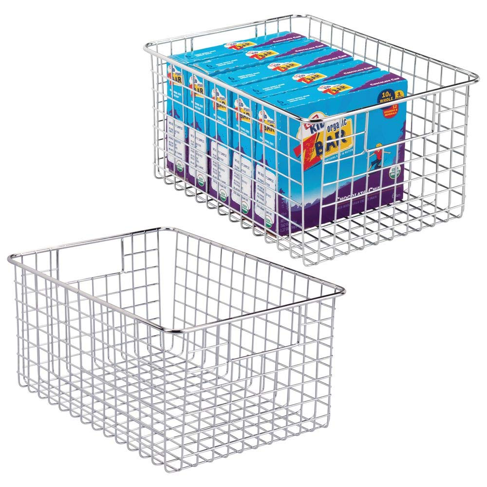 mDesign Farmhouse Decor Metal Wire Food Storage Organizer Bin Basket with Handles - for Kitchen Cabinets, Pantry, Bathroom, Laundry Room, Closets, Garage - 12" x 9" x 6" - 2 Pack - Chrome