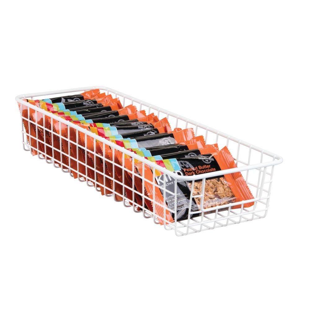 mDesign Household Wire Drawer Organizer Tray, Storage Organizer Bin Basket, Built-In Handles - for Kitchen Cabinets, Drawers, Pantry, Closet, Bedroom, Bathroom - 16" x 6" x 3" - 2 Pack - Matte White