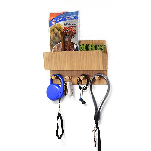 MobileVision Bamboo Pet Supply Organizer All-in-One Wall Mounted Dog Leash Holder/Rack Extra Space Compartment for Storage of pet Essentials Treats/Keys/Toys