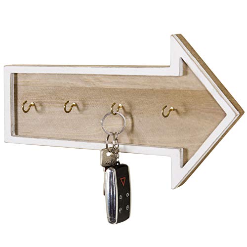 MyGift Wall-Mounted Vintage White Wood Arrow Key Holder with 4 Metal Hooks