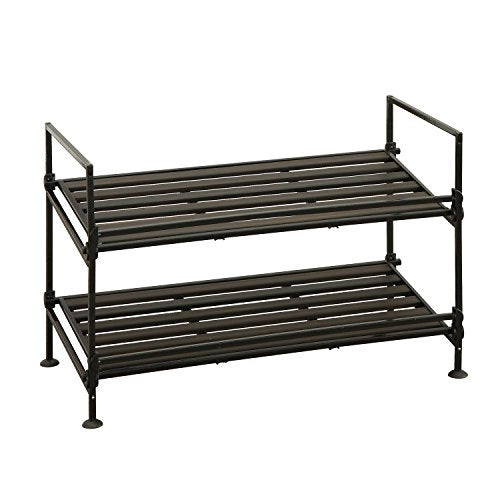 2 tier free standing resin utility stackable shoe rack, finished in espresso is perfect for keeping shoes neatly organized. Suitable for many type of room settings such as bedrooms, dorm rooms, and entryways. Extending function and removable shelf. Easy assembly requires NO tools. Instructions included.