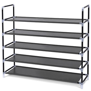 Keep your shoes organized with this Songmics 5 Tiers Shoe Rack, which is designed to provide a great storage solution for your collection of favorite footwear. It is constructed out of durable iron pipes, non-woven fabric and plastic connectors. Each shelf holds up to 3 or 4 pairs of full-size shoes.