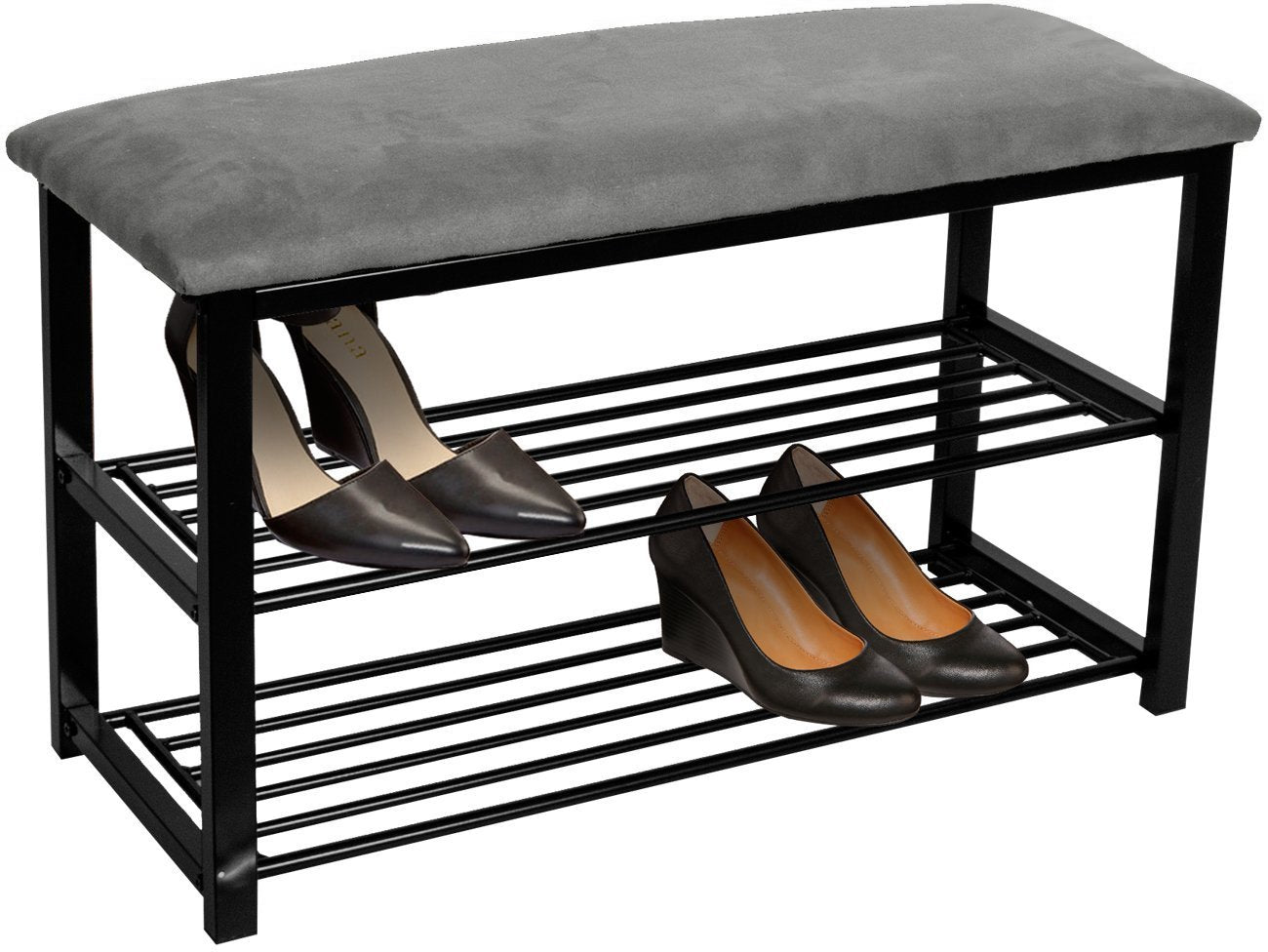 Sorbus shoe rack bench stylish accent piece storage seating our functional warm way welcome guests front entrance it's loaded with versatility style doubles cozy seat two-tiers only store footwear these racks accommodate personal items such magazines folded blankets small bins more this great addition any nook cranny making ideal busy entryway family room standout design blends well other furniture staged near lush potted plants mirrors wall art added flair clear clutter transform hallway mudroom closet much hallways walk-in closets convenient whole create comfy place access remove shoes doorway kids need designated backpacks after school turn fun-ctional clutter-free zone offers under window area makes perfect complement while try favorite multi-purpose sturdy durable easy assemble made microfiber fabric upholstery cushioned cover metal frame features -tiers each shelf tier holds three pairs six total depending size minimal assembly required instructions hardware included measures approximately home apartment college dorm business