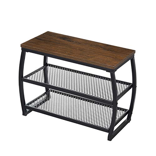 VINTAGE ELEGANCE: Featuring wood tabletop with vintage grain and iron frame with black finish, this shoe organizer brings a delicate antique touch to your home and will complement with other furniture.