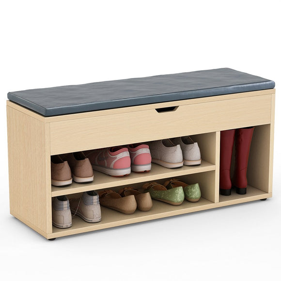 Tribesigns Shoe Storage Bench Upholstered Shoe Rack Organizer Hall Bench with Storage for Entryway, Hallway (Oak)