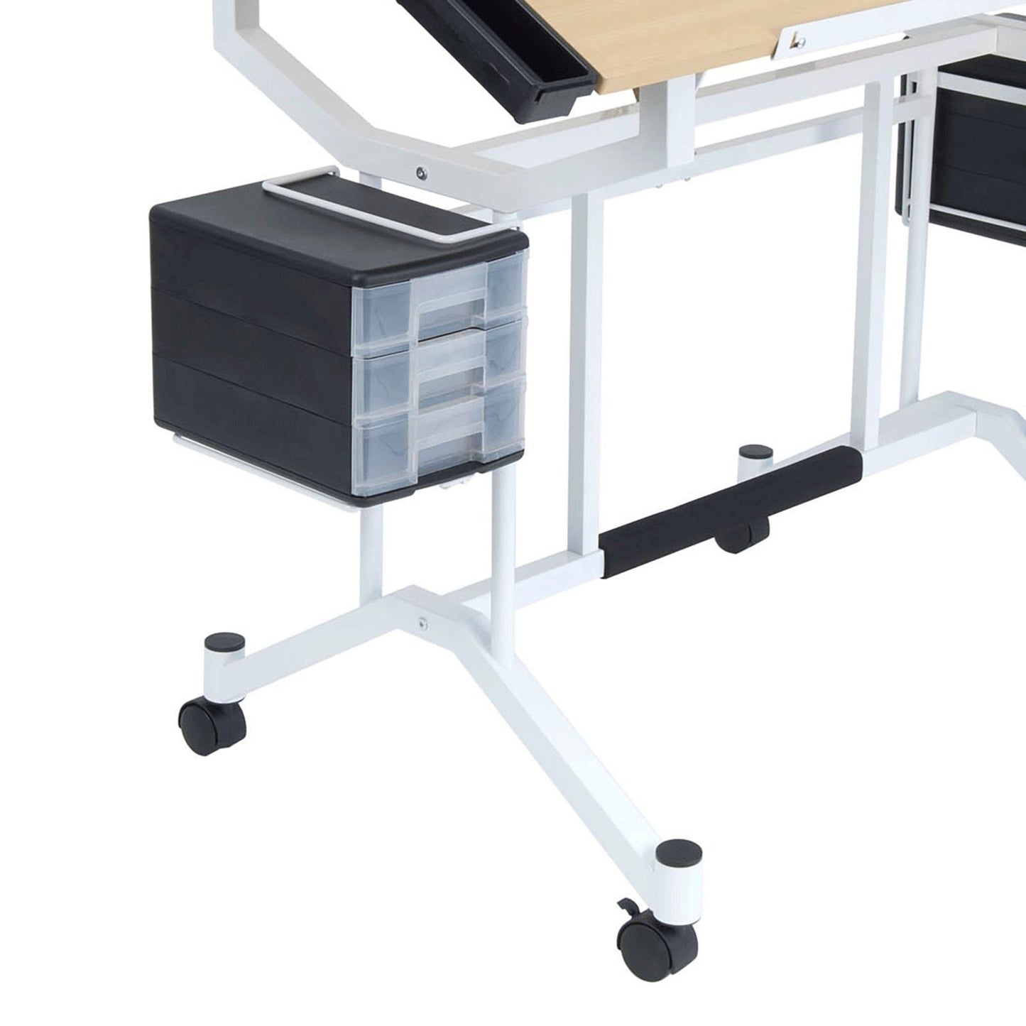 - Two 3 Drawer Adjustable Height Storage Drawers, 24" Slide-Up Pencil Ledge