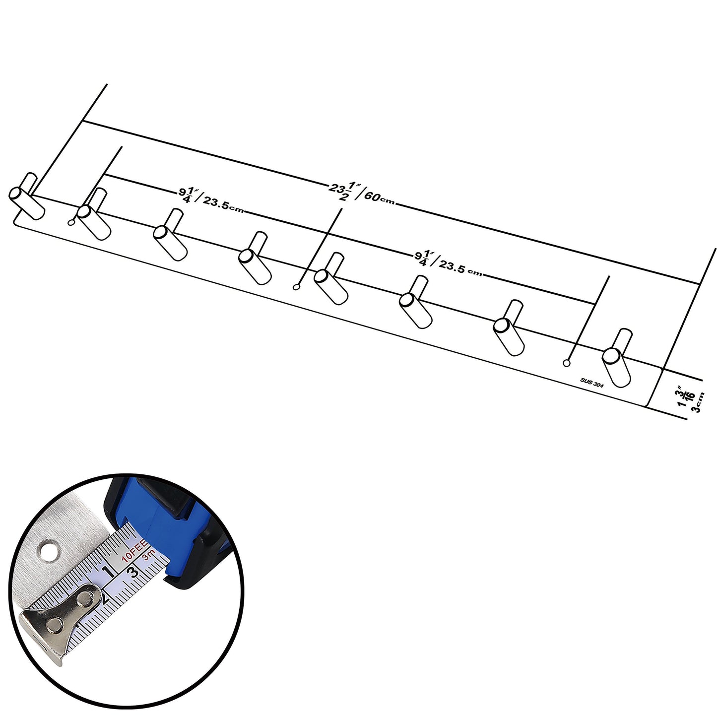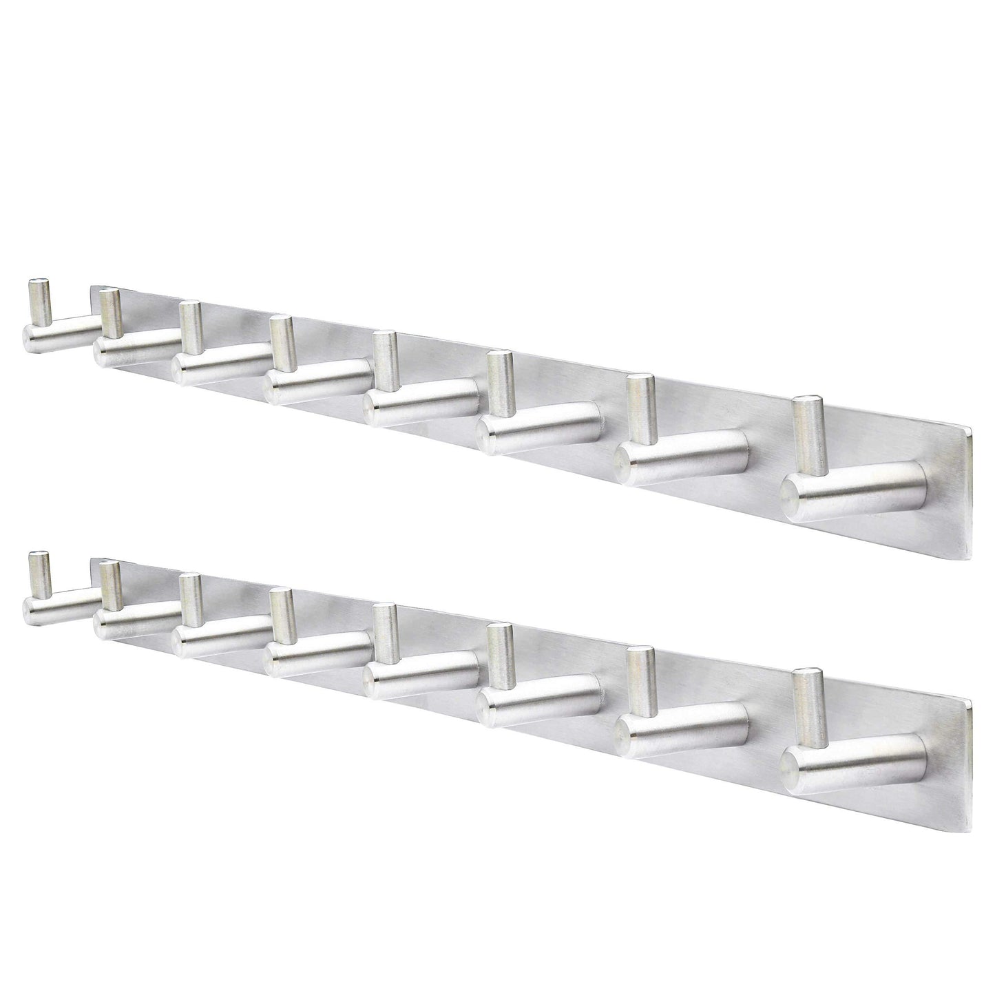 WEBI Wall Mounted Coat Rack - Heavy Duty SUS 304 Wall Hooks Rack Robe Hooks Metal Decorative Hook Rail - for Bathroom Kitchen Office Entryway Hallway,8 Hooks, Brushed Finish,2 Packs